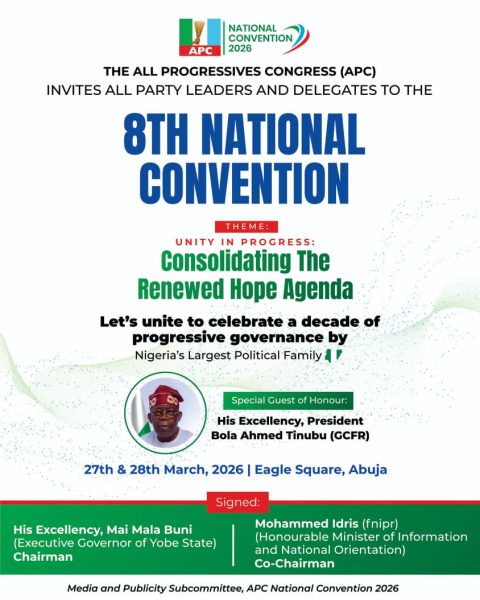 A The All Progressives Congress (APC) has reaffirmed its commitment to conducting a peaceful, transparent, and credible National Convention scheduled for March 27 and 28 at Eagle Square in Abuja.